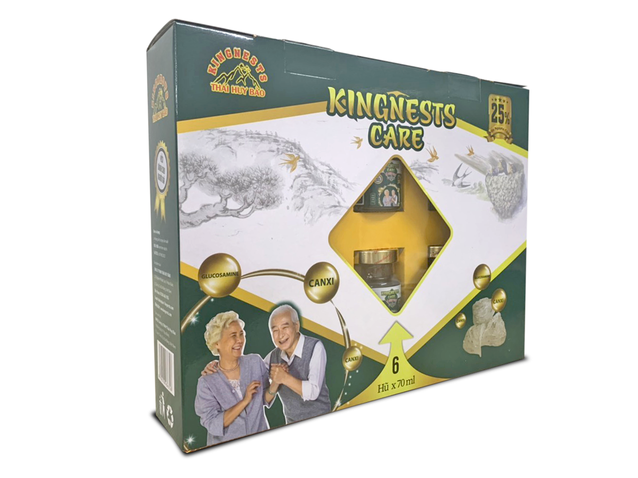 Thành phần sản phẩm: Yến sào 25%, đường phèn, canxi, glucosame, nước tinh khiết và 1 số hương liệu khác.