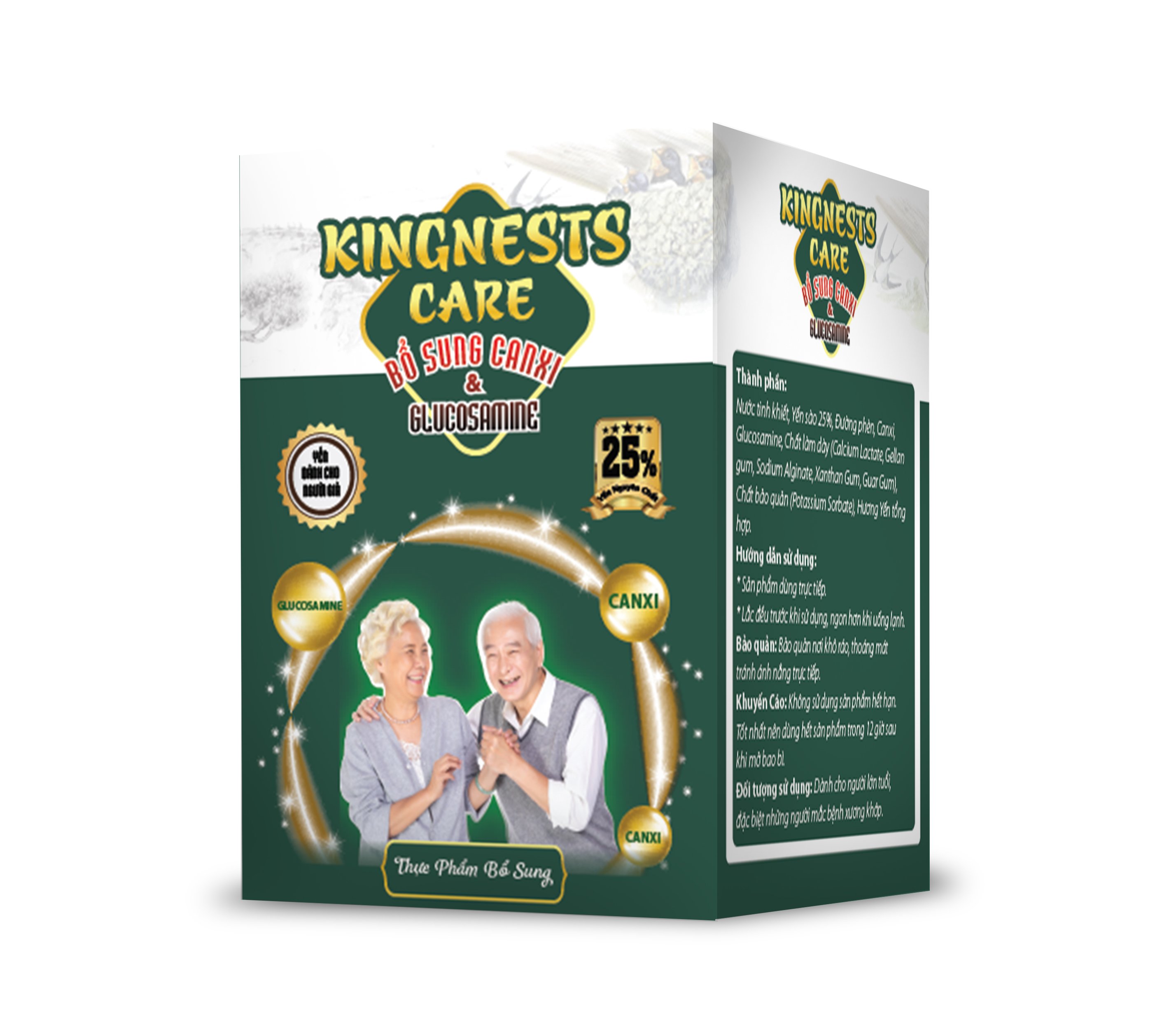 Thành phần sản phẩm: Yến sào 25%, đường phèn, canxi, glucosame, nước tinh khiết và 1 số hương liệu khác.
