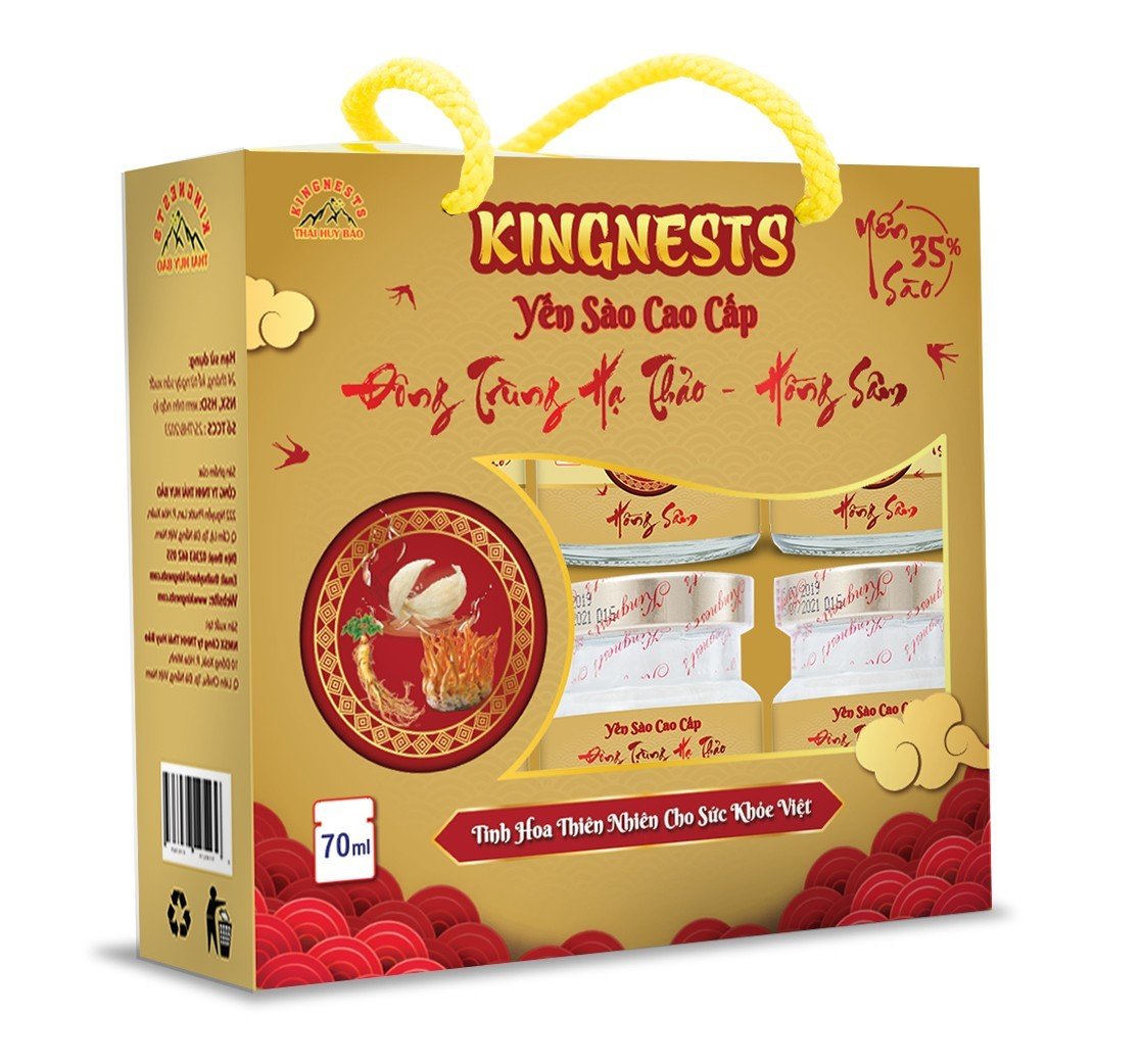 Thành phần sản phẩm: Yến sào 35%, đường phèn, đông trùng hạ thảo, tinh chất hồng sâm, nước tinh khiết...